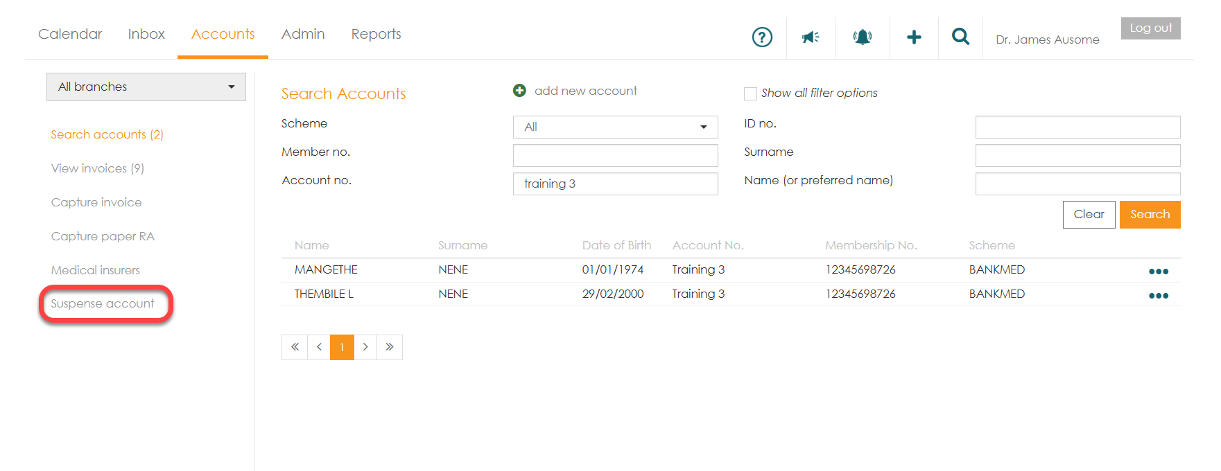 The suspense account is found in the ‘Accounts tab’ and gives you a list of all unreconciled remittances that were discarded from the inbox.