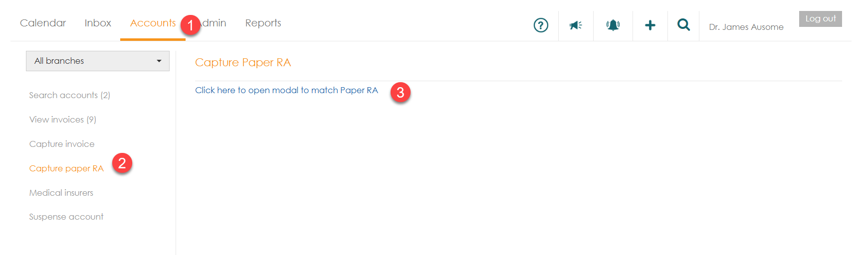 - From the ‘Accounts’ tab, click the ‘Capture paper RA’ menu option.