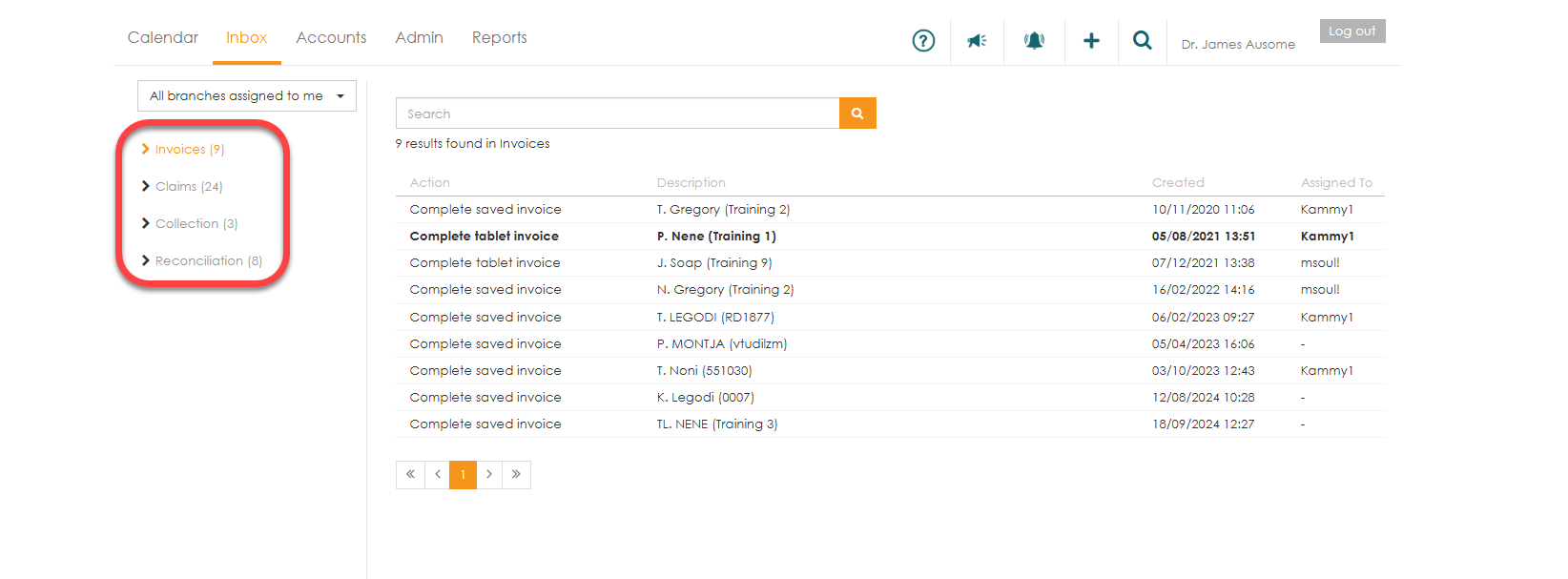 Invoices submitted to the medical aid which need to be fixed and resubmitted are divided into 2 categories: